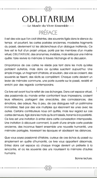 Ce livre est né des échanges du groupe Facebook Oblitarium : un musée virtuel vivant où cartes postales anciennes, images et souvenirs déclenchent des conversations, des récits et des fragments de mémoire partagée.