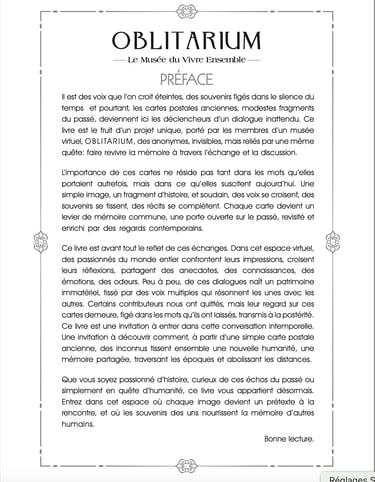 Ce livre est né des échanges du groupe Facebook Oblitarium : un musée virtuel vivant où cartes postales anciennes, images et souvenirs déclenchent des conversations, des récits et des fragments de mémoire partagée.